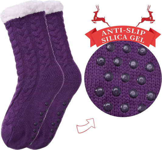 Women'S Winter Super Soft Warm Cozy Fuzzy Fleece-Lined with Grippers Slipper Socks